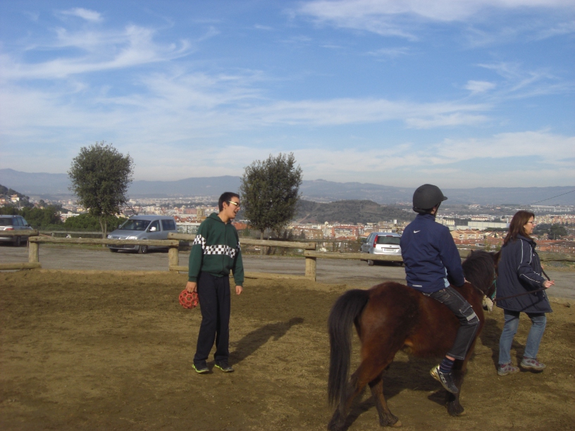 Després de netejar-los vam fer el circuit. Hem de fer que els ponis passin per on els diem. Hi ha un camí marcat per pals, caixes i cons. Els ponis passen per aquests camins perquè tenen confiança en nosaltres. Penseu que de vegades l'obstacle té una mica d'alçada. Ens ho passem molt bé!!